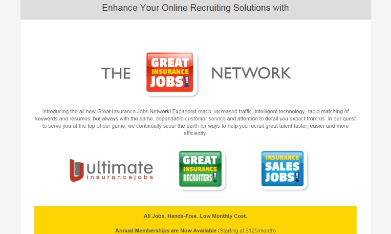 GreatInsuranceJobs.com is an online job board that specializes in jobs in the insurance industry. Since 2001, we have worked with insurance employers to find the right candidates for their job openings.